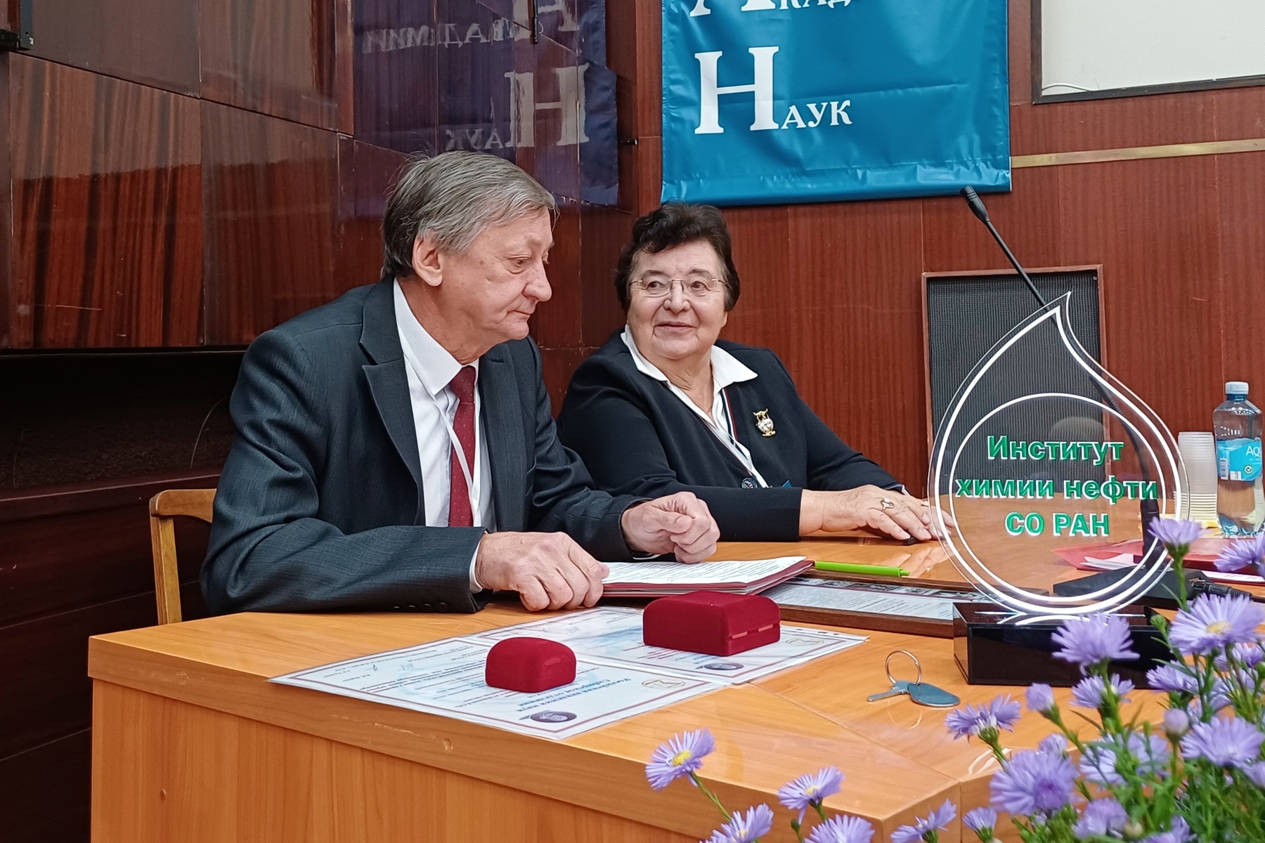 На торжественном заседании прозвучал целый ряд поздравлений: в видеоформате от председателя Сибирского отделения РАН академика Валентина Пармона, от руководства Департамента по научно-технологическому развитию и инновационной деятельности Томской области, Института сильноточной электроники СО РАН, Института мониторинга климатических и экологических систем СО РАН, Томского филиала Института нефтегазовой геологии и геофизики имени А.А. Трофимука СО РАН, Института катализа имени Г.К. Борескова СО РАН (г. Новосибирск), Института проблем нефти и газа СО РАН (г.Якутск) и Уфимского государственного нефтяного технического университета.