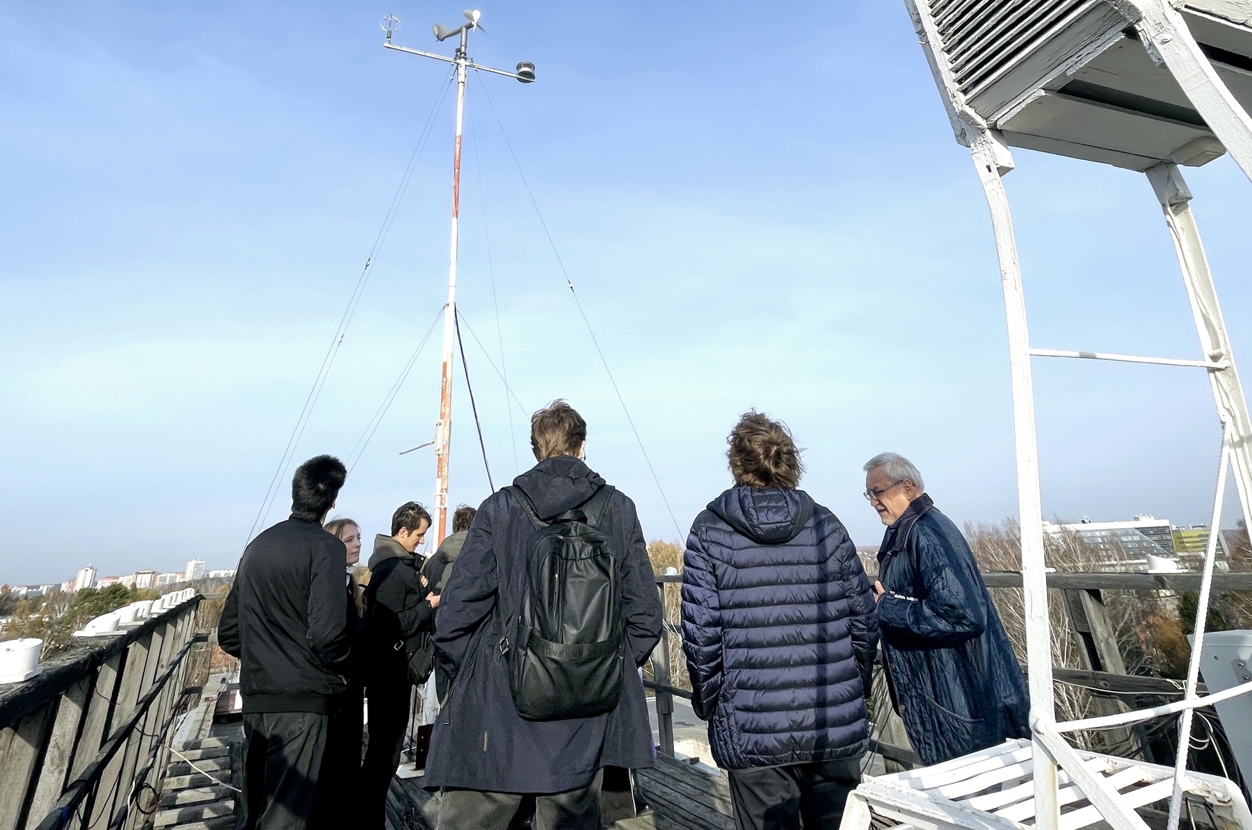 Кандидат физико-математических наук Сергей Смирнов, начальник геофизической обсерватории ИМКЭС СО РАН, рассказал о метеорологических измерениях, которые проводятся на ее базе. Он продемонстрировал современные измерительные приборы – барометры, гелиограф, гигрометры и др., объяснив их назначение и способы фиксации атмосферных параметров и солнечной активности.
