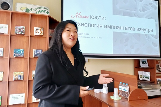 Лекционную часть завершила Валерия Ким, младший научный сотрудник лаборатории нелинейной механики, метаматериалов и многоуровневых систем ИФПМ СО РАН. Она показала, как ученые-материаловеды помогают онкобольным, создавая для них индивидуальные костные имплантаты. Участники фестиваля смогли узнать обо всех стадиях этого сложного пути: от получения компьютерной томографии пациента до проектирования медицинского изделия.