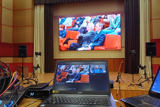 В большом конференц-зале Конгресс-центра «Рубин» установили новый современный LED-экран размером 5,7 на 3,2 метра. Его появление позволит проводить научные и культурные мероприятия для большой аудитории на качественно новом уровне. В четверг 5 марта руководство и сотрудники Томского научного центра СО РАН первыми познакомились с возможностями нового оборудования.